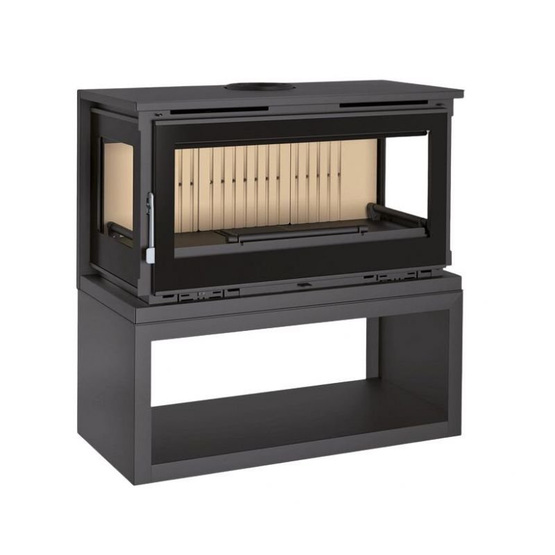 Er verfügt über ein Doppelverbrennungssystem, wodurch ein Wirkungsgrad von 81 % erreicht wird. Die Tür dieses Ofenmodells ist, wie auch der Feuerrost, vollständig aus Gusseisen gefertigt.